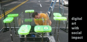 Project group collaborations result in publications and exhibitions. In the photo above, Lyés Belhocine, DANM MFA class of 2010, builds his installation “Sounds Interesting…”, representing the Mechatronics collaborative research project group, sonicSENSE, at the recent 01SJ festival in San Jose.