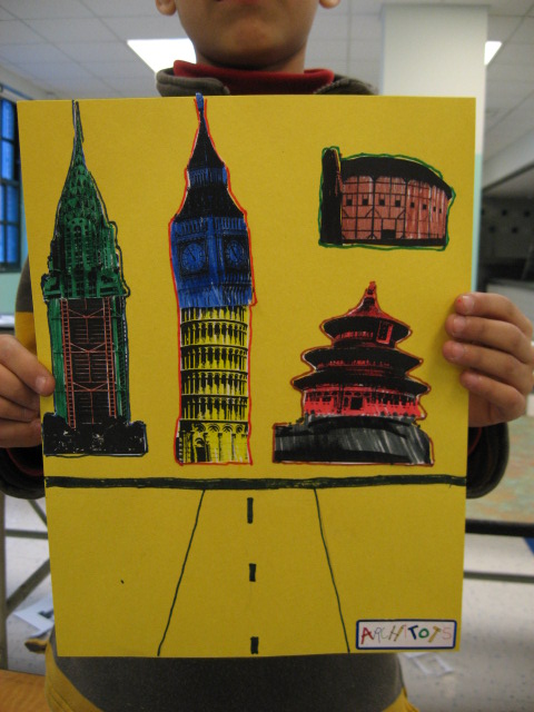 Like many a budding architect, Shane Stock speaks of his designs in terms that are both lyrical and logical. Stock is now in the construction phase of his latest project, one in which the main structure and the surrounding grounds, are both meant to evoke a sense of lightness. “Buildings that make us feel lighter are more attractive,” he says. “I’m inspired by greenhouse spaces with a lot of windows and a lot of light. I have a ‘rain drop’ hotel design that I’m working on—mostly made out of glass.” His current building, however, employs different building materials. It is constructed from white cardboard and ornamented with a variety of colored markers. It stands approximately twelve inches tall, and fits nicely on his classroom’s desktop. Shane Stock is, after all, a fifth grader enrolled in a studio program, called “Architots,” in the Middle Village neighborhood of the borough of Queens, in New York City.